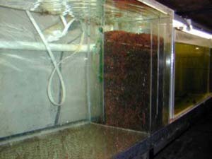 The most important component of an Apistogramma tank is the water. There are three things about the water that have to be right: hardness, pH, and cleanliness. I am fortunate when it comes to the water I get from the tap. It is snowmelt, right off the Cascade mountain range in Oregon. It is almost, but not quite good enough to keep Apistogramma in without any conditioning at all (100 ppm hardness and a pH of 6.5). Because in some cases it is not quite good enough I still run it through an R.O. (reverse osmosis) filter. Ion exchange is OK, but I don't like recharging them or having to get new resins when they're used up. Besides, with my tap water, I have yet to wear out the membrane in my R.O. filter!